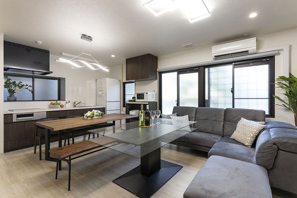 館内には大浴場やサウナ、微細バブルSPAバスタブ、最新のDAMカラオケ設備を備え、家族旅行や仲間との集まり、長期滞在まで幅広くご利用可能。最大9名まで宿泊でき、三世代旅行や親族行事にも最適です。昼夜で表情を変える庭を眺めながら、暮らすように過ごす贅沢な京都のひとときをお楽しみください。